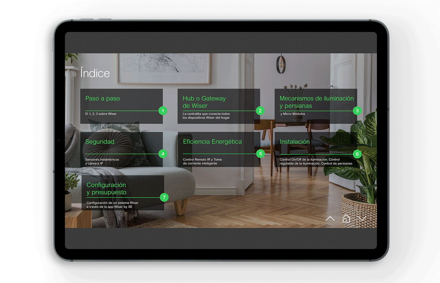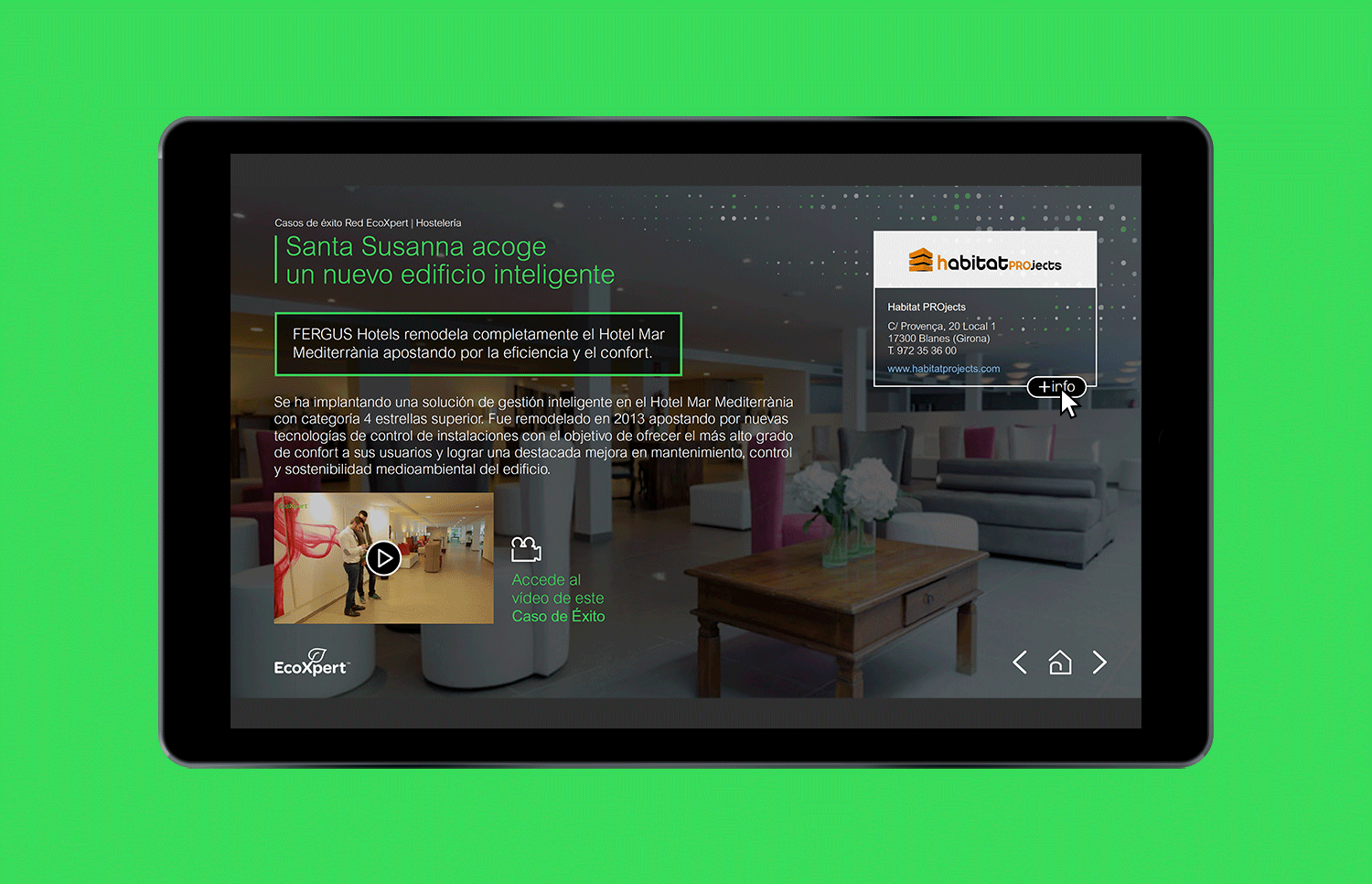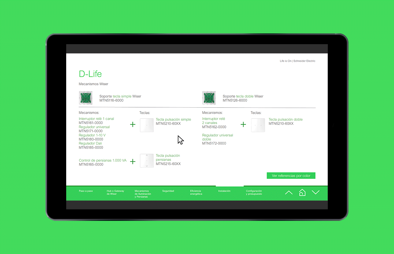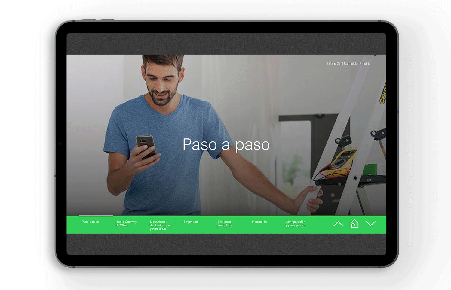 Creación de documentos interactivos para diferentes productos y servicios de la marca Schneider Electric. Adaptación de contenidos preparados para impresión a formato 16:9 para pantallas. Creación y aplicación de botones, hipervínculos y otros recursos interactivos que ayudan al usuario, agilizan la navegación por el documento y facilitan la obtención de resultados y ampliación de información por medio de contenidos adicionales. Para la realización de este proyecto hemos ofrecido una solución integral: análisis, composición y maquetación, diseños interactivos y páginas totalmente digitales con enlaces externos e internos, desarrollo de acciones pop up con ventanas desplegables, etc.